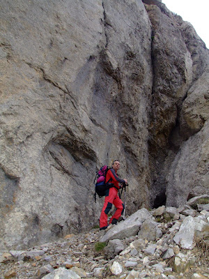 Vamos ascendiendo por la empinada pedriza. La Sierra de Chía comienza a mostrarnos los macizos más al norte. La glera no nos deja avanzar lo rapido que quisieramos.